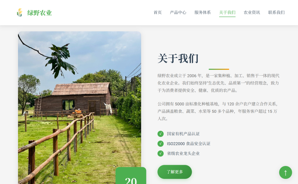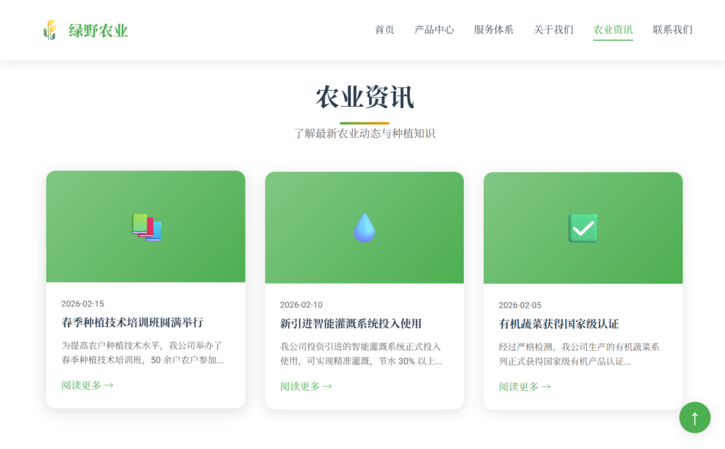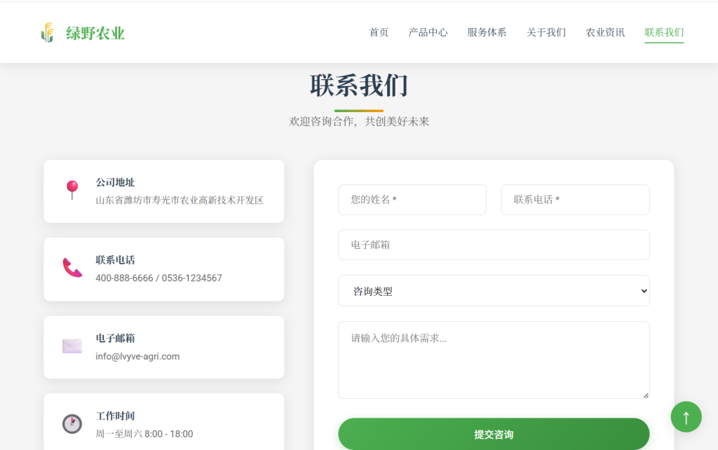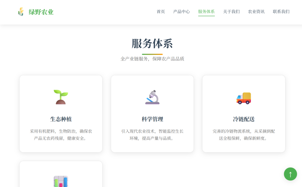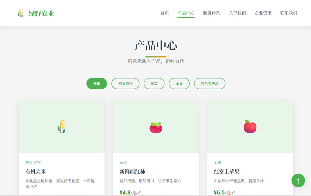 • 设计风格以 自然生态 为主,采用绿色系配色方案 (#4caf50),注重农业行业特色与用户体验,支持多档响应式断点适配,适合农业企业官网、农产品展示页、农场落地页等场景。