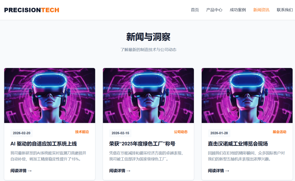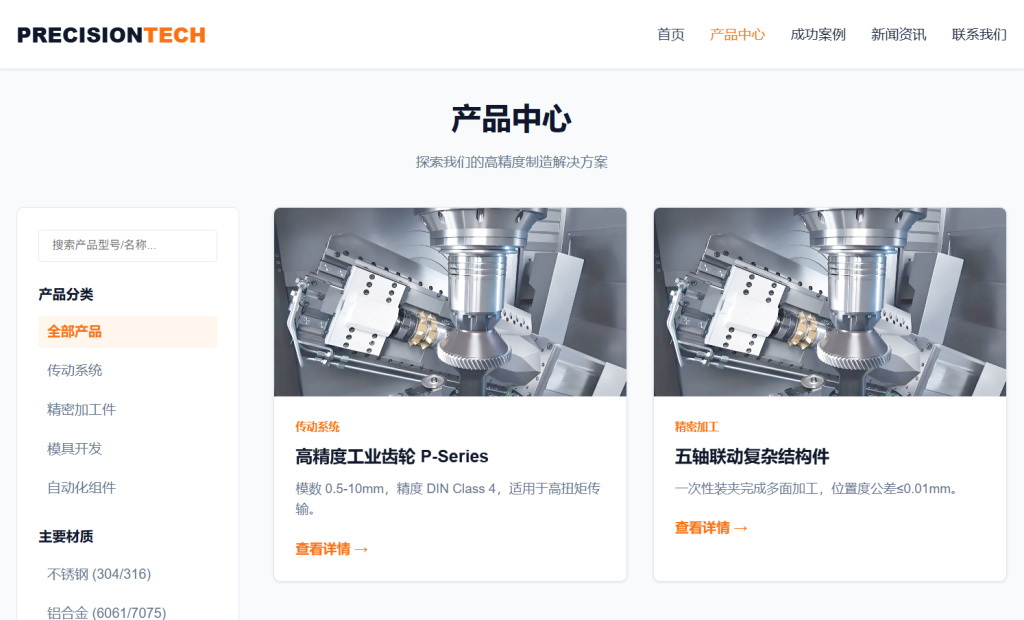 • 全站支持 多档响应式断点 适配,完美兼容桌面端、平板及移动端设备,适合机械加工、电子制造、化工生产、自动化设备等各类生产企业官网场景。