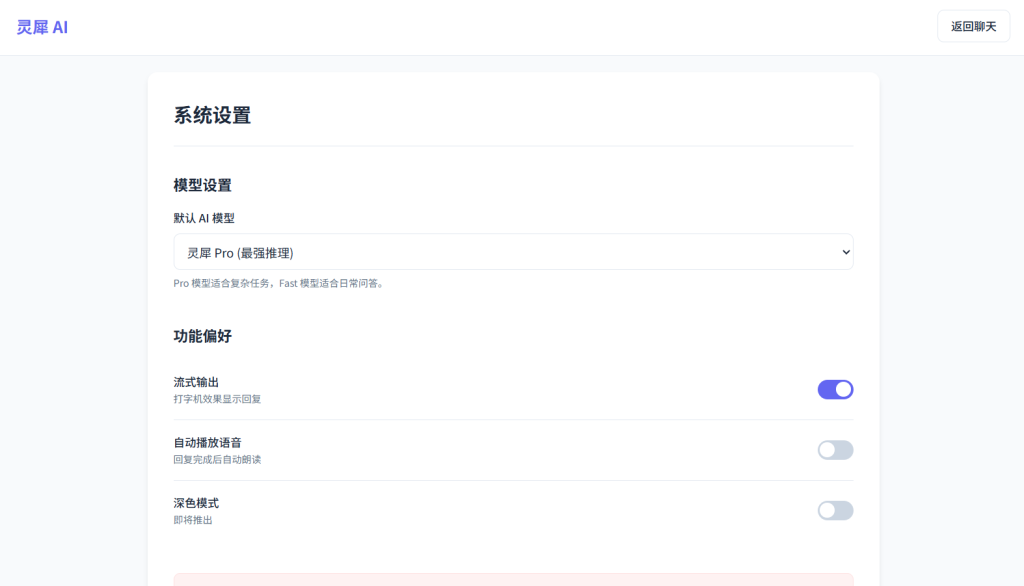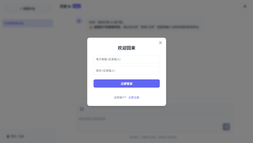 • 设计风格定位为 现代极简科技风 (Modern Minimalist Tech),主色调选用 静谧靛蓝 (#6366f1) 搭配 纯净雪白 (#ffffff) 与 柔和灰阶 (#f8fafc),营造出专业、冷静且富有未来感的 AI 交互氛围。界面细节融入了 玻璃拟态 (Glassmorphism) 导航栏、流式打字机效果多模态输入预览 及 平滑过渡动画,旨在提供沉浸式的对话体验。
